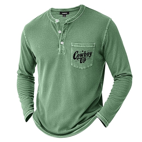 Per uomo Maglia Henley Maglietta Manica Lunga Vintage Stampa lettera Retrò Vintage Casual Con stampe Tasca Grafico Henley Casuale Primavera Autunno Tutte le stagioni Blu Viola Marrone Maglietta Henley