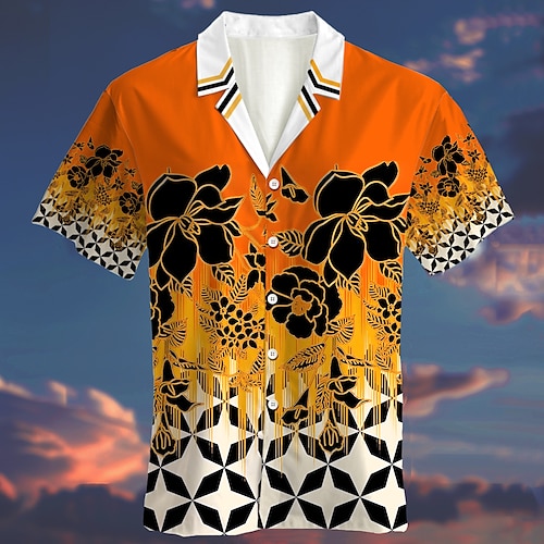 Per uomo Ambra Floreale Geometrico Camicia hawaiana Camicia da campo Camicia Aloha Manica corta Camicia Collo ripiegabile Di tendenza Hawaiano Originale Esterno Strada Informale Giallo Blu Arancione