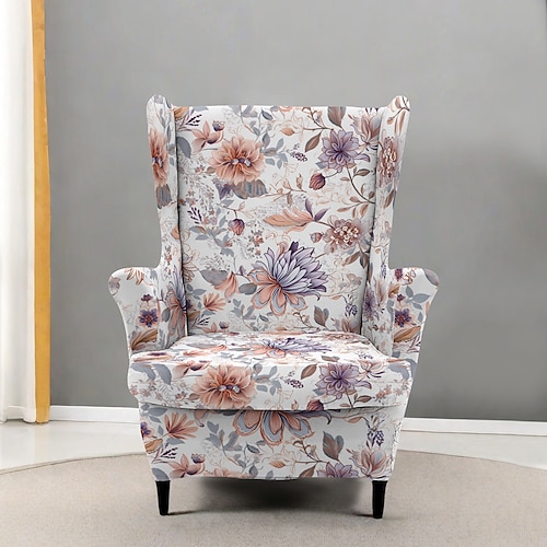 Copripoltrona con schienale alto, copridivani in poliestere con stampa geometrica a righe floreali per soggiorno, camera da letto e ufficio domestico