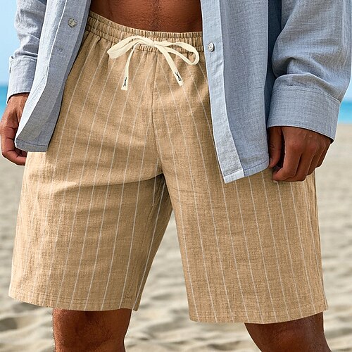 Per uomo Shorts Shorts di Lino Pantaloncini Estivi Shorts da Spiaggia Coulisse Elastico in vita A righe Comodità Traspirante Lunghezza al ginocchio All'aperto Quotidiano Spiaggia Vacanza Hawaiano