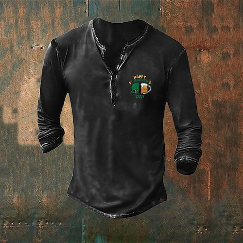 Per uomo Maglietta per il giorno di San Patrizio Maglietta trifoglio di San Patrizio Maglia Henley Maglietta Manica Lunga Henley Primavera Estate Giorno di San Patrizio Moda Festa di San Patrizio