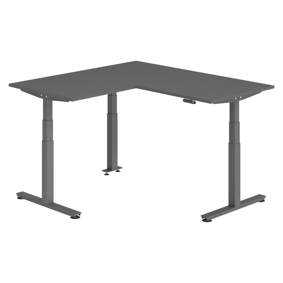 bümö Eckschreibtisch elektrisch höhenverstellbar L-Form: 160 x 160 cm in graphit, Gestell graphit - Stehschreibtisch mit Memory-Steuerung,