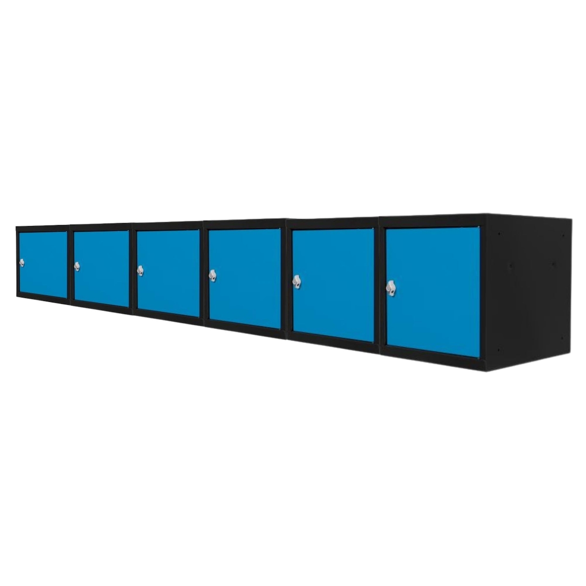 Proregal Mega Deal | 6x Schließfachwürfel Blocky mit Drehriegelschloss für Vorhängeschloss | HxBxT 40x40x40cm | Anthrazit/Lichtblau