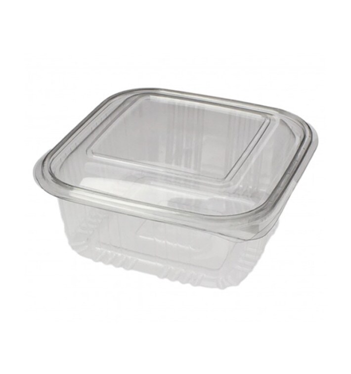 MONOUSO - Transparente Dose mit Klappdeckel Viereckig PET 500ml (100 Stück)