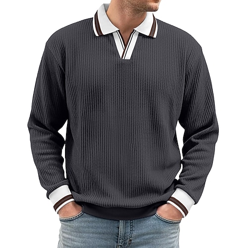 Per uomo Polo Top a Maglia a Coste Vacanza Streetwear Bavero Manica Lunga Essenziale Moderno Semplice Bottoni Primavera Autunno Tutte le stagioni Vestibilità aderente Blu Nero Grigio Blu marino Polo