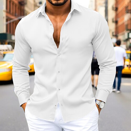 Per uomo Camicie da lavoro Camicia non stirabile Tinta unita / tinta unita Matrimonio Ufficio e carriera Blu chiaro Nero Bianco Blu marino scuro Manica lunga Collo ripiegabile Per tutte le stagioni