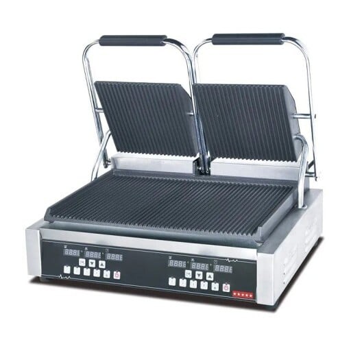 Ristoattrezzature Professioneller digitaler elektrischer Sandwichmaker, gerippt/doppelt gerippt, 57 x 37 x 21 cm