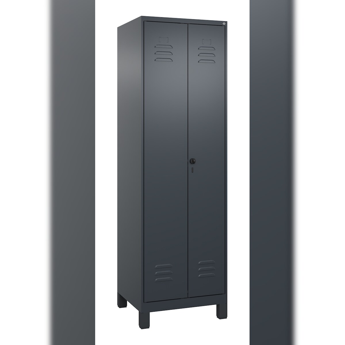 C+P Aufbewahrungs Doppel-Spind Classic PLUS, Füßen, 2 Abteile, 5 Fachböden, HxBxT 195x60x50cm, Sicherheitsdrehriegel, Anthrazit von PROREGAL