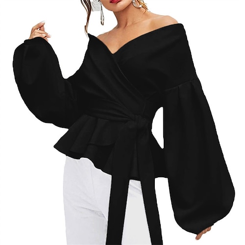 Per donna Top estivi Blusa Top Eleganti Tinta unica Semplice Elegante Vintage Quotidiano Manica Lunga Manica a Lanterna Senza Spalle Top Regolari Quotidiano Lavoro Ferie Arricciato Allacciato Volant