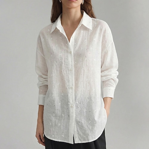 Per donna Camicia casual Camicia con Bottoni Blusa Arricciato Asta Tinta unica Elegante Quotidiano Manica Lunga Collo ripiegato Top Regolari All'aperto Ferie Bianco Primavera Autunno