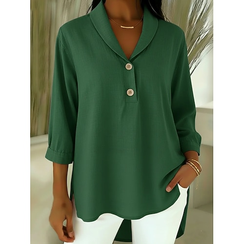Per donna Camicia popover Camicia Estiva Camicia casual Blusa Tinta unica Vacanza Elegante Essenziale Manica 3/4 Scollo a V Top Regolari Quotidiano All'aperto Ferie Blu Bianco Rosso Verde Azzurro