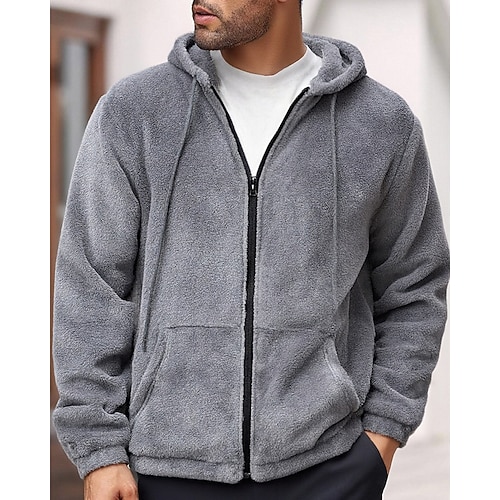 Per uomo Giacca Invernale Cappotto Teddy Giacca Casual Vacanza Quotidiano Calore Termico Tasca Pile Autunno Inverno Semplice Moda Streetwear Con Cappuccio Regolare Nero Marrone Caffè Giacca