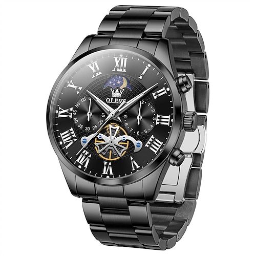 Il nuovo Olevs Orologio da uomo con cinturino in acciaio fase lunare Calendario Luminous cronografo indicazione delle 24 ore è un orologio sportivo impermeabile casual alla moda e versatile