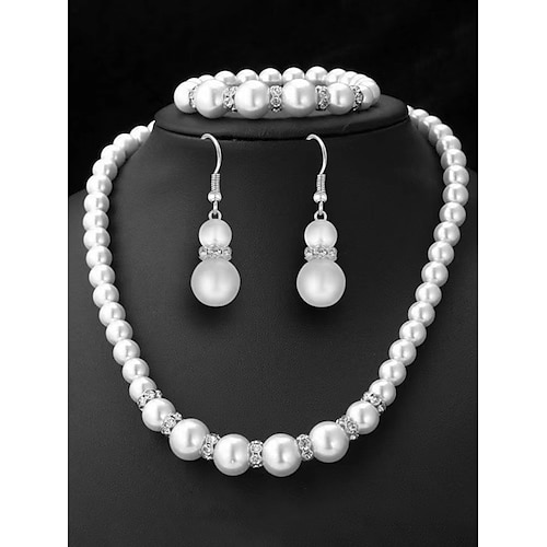 set di gioielli da donna in finte perle, elegante tonalità oro e argento, composto da collana, orecchini e bracciale, perfetto per matrimoni e occasioni formali