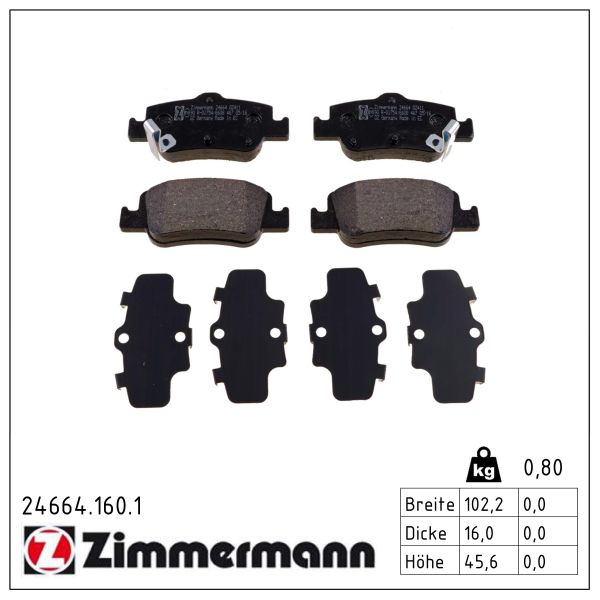 ZIMMERMANN Bremsbelagsatz, Scheibenbremse 24664.160.1 hinten rechts links Foto entspricht Lieferumfang für TOYOTA 04466-02190 04466-47100 04466-02290
