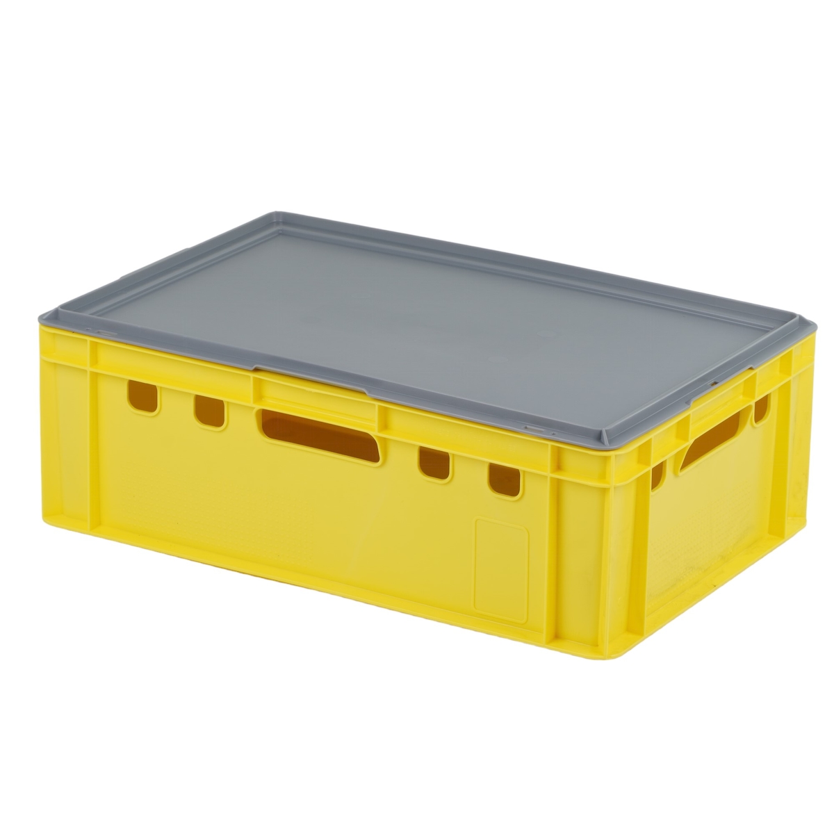 E2 Kiste (600 x 400 x 200mm) mit grauem Deckel Fleischkiste Lagerkiste Metzgerkiste in Gelb