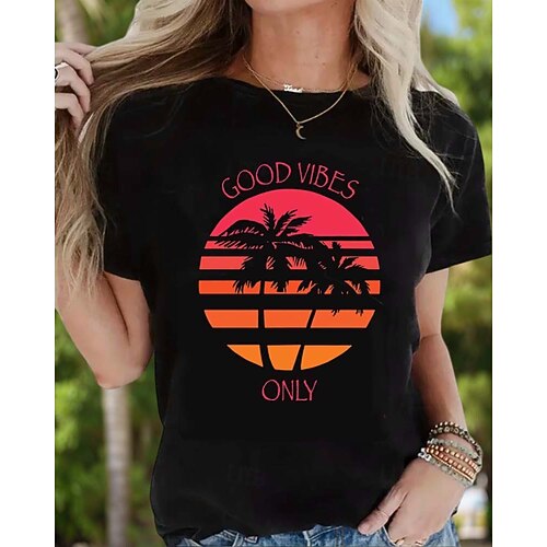 maglietta da donna casual stampa manica corta top regolari quotidiano grigio estate
