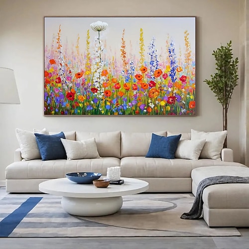 dipinto a mano originale di fiori colorati dipinto a olio su tela dipinto di gruppo di fiori con texture astratta arte murale per l'arredamento della casa con cornice tesa/senza cornice interna