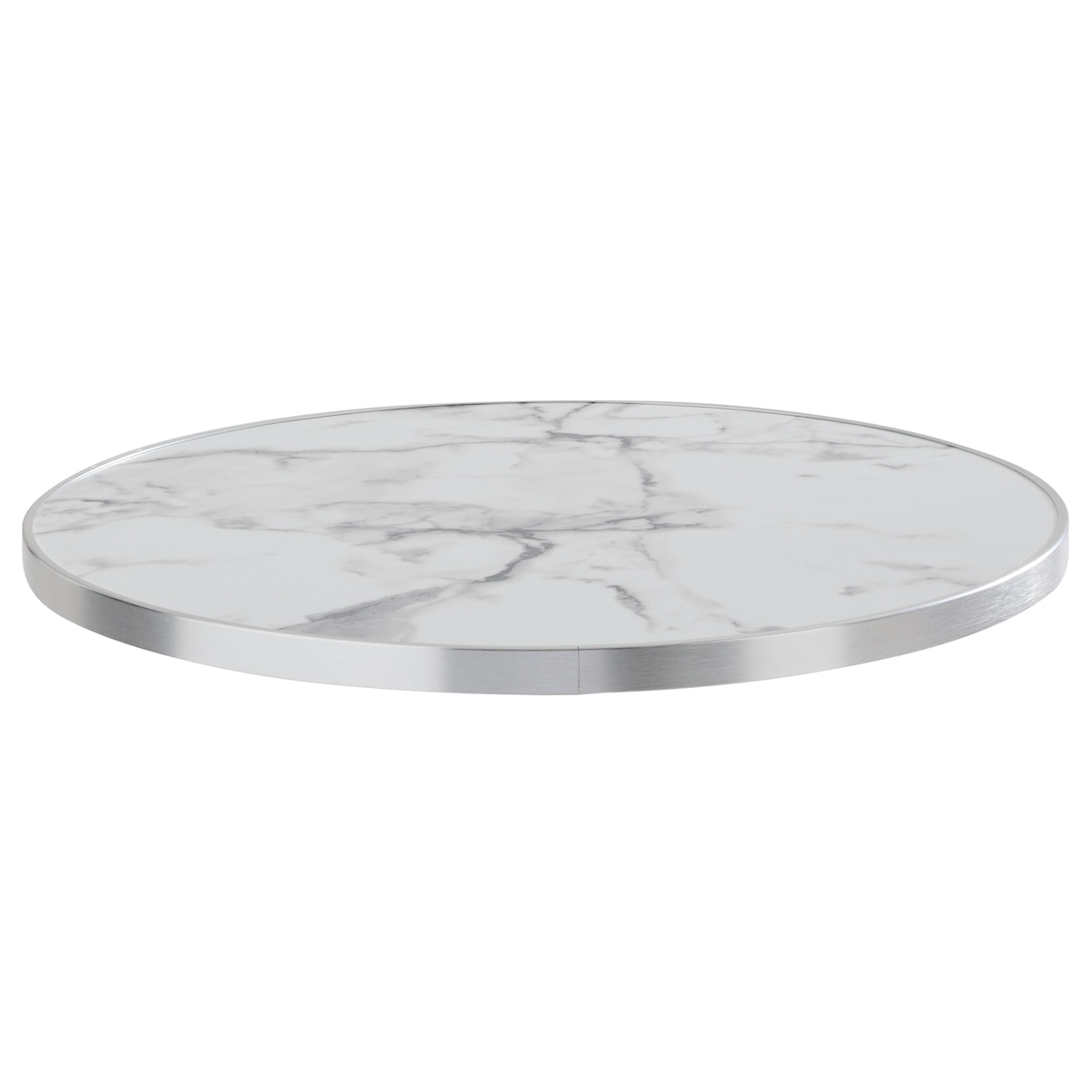 Oviala Business Tischplatte rund weißer Marmor mit silberner Umrandung 60cm Montmartre - Oviala