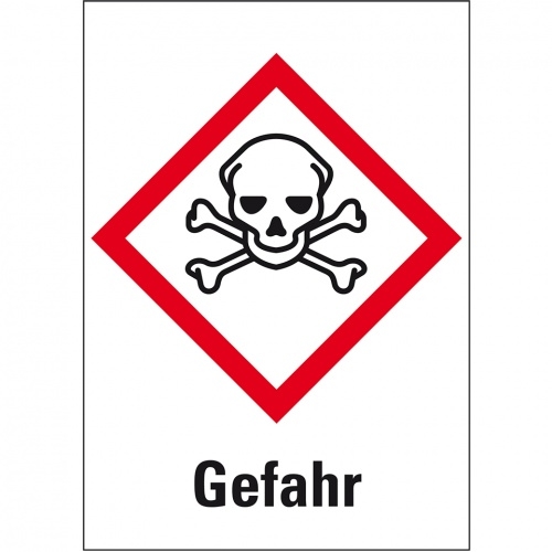 König Werbeanlagen Dreifke® Aufkleber I Gefahrensymbol Totenkopf mit gekreuzten Knochen GHS 06, Gefahr, Folie, 74x105mm, 500/Rolle, GHS-Verordnung