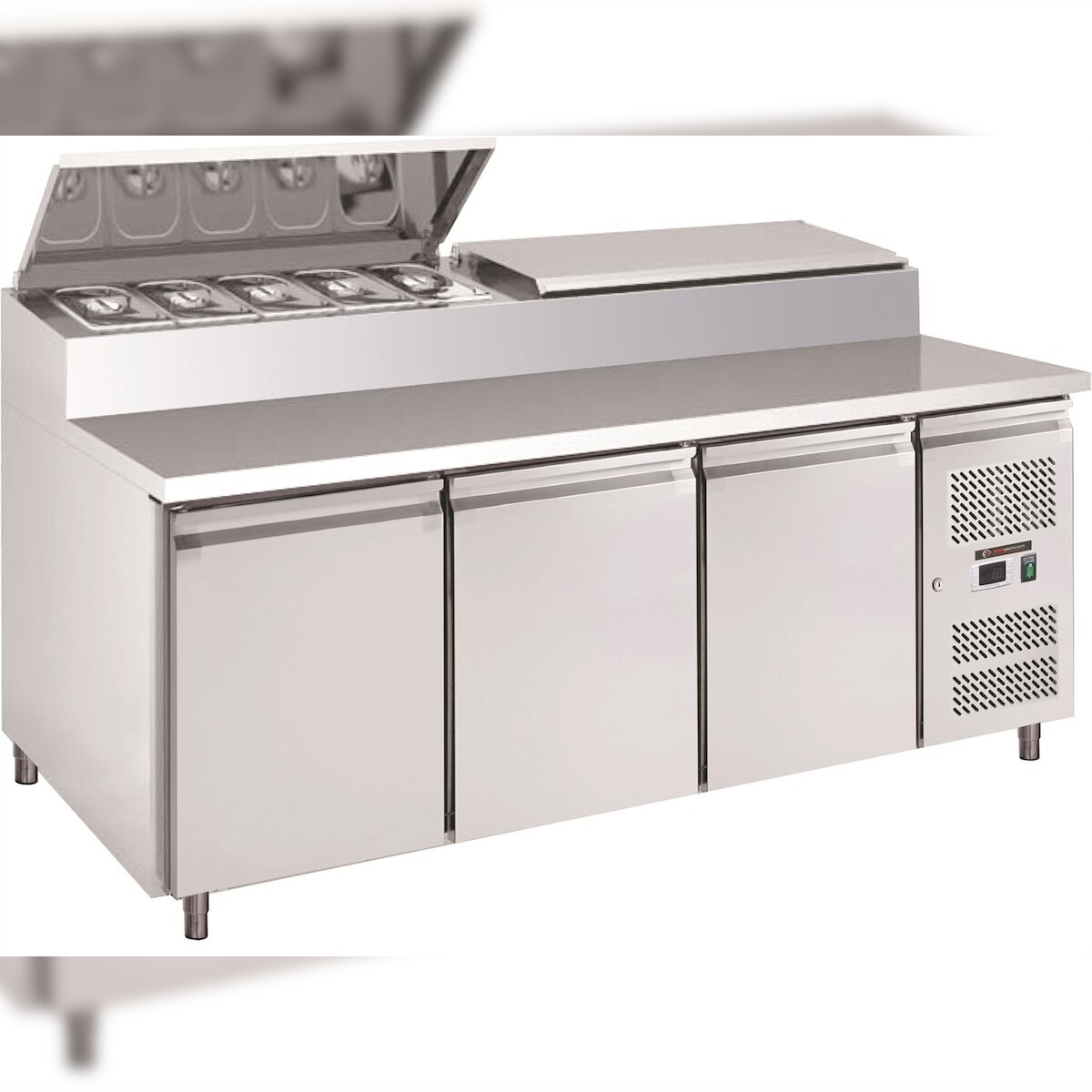 Zubereitungstisch / Vorbereitungstisch / Saladette / GN 1/3 Edelstahlaufsatz - 2,02 x 0,80 m - mit 3 Türen