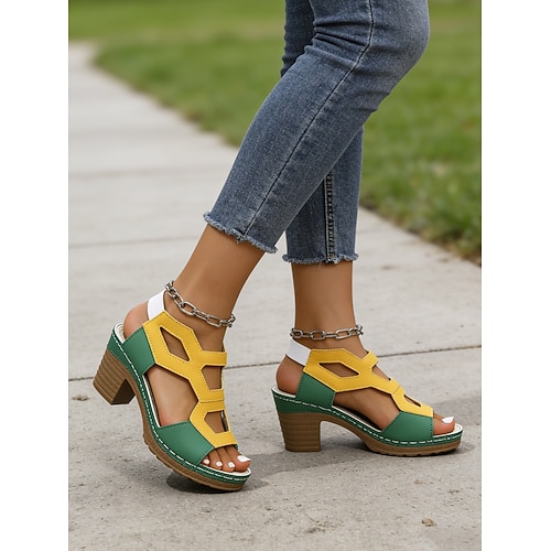 Per donna Casuale Quotidiano Tacco grosso Punta aperta Casual Comfort Finta Pelle Fascia Elastica Giallo Viola Rosso blu