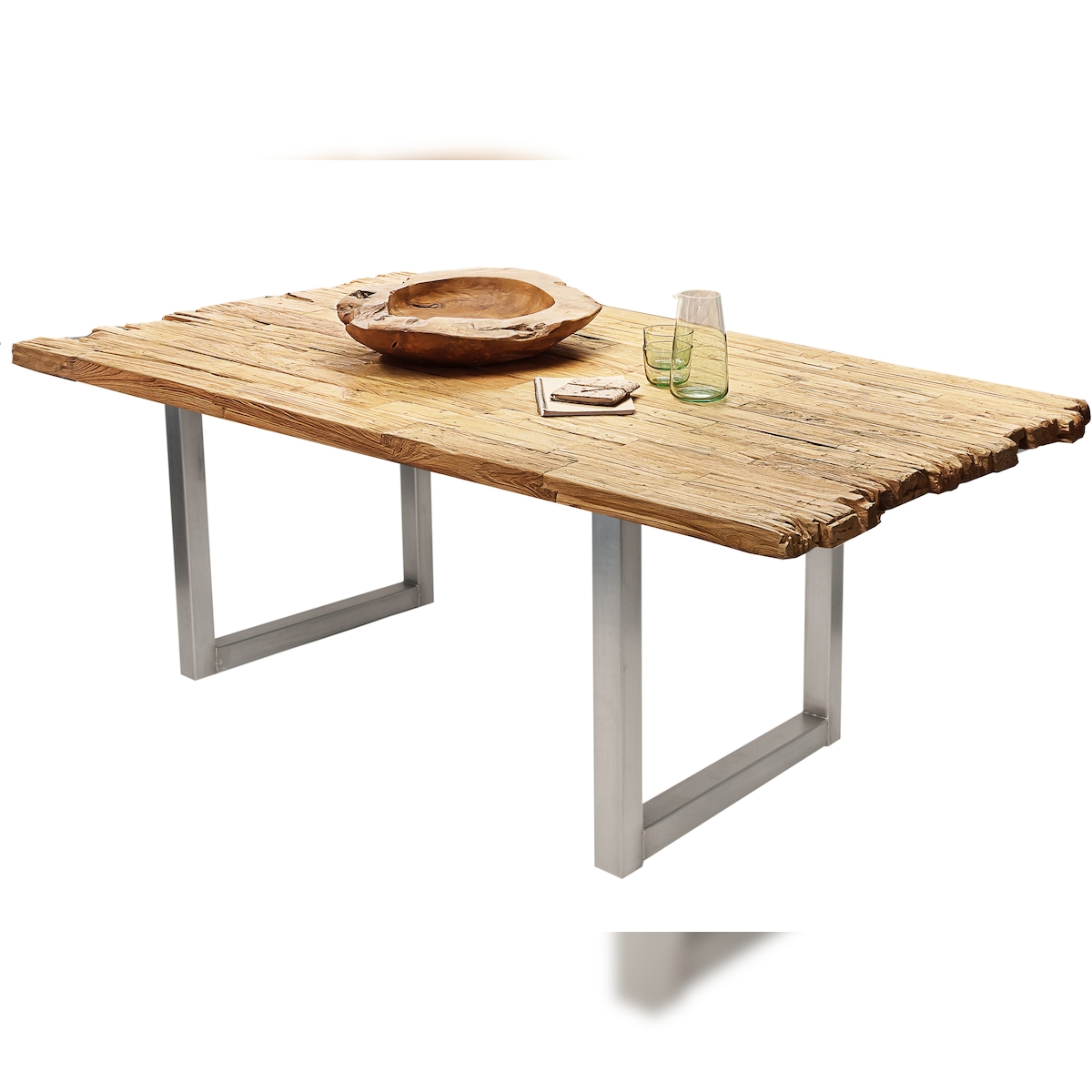 SIT Möbel Esstisch aus Teak 220 cm | Platte 50 mm natur | Kufen-Gestell Metall silber | B 220 x T 100 x H 75,5 cm | 15483-40 | Serie TABLES & CO