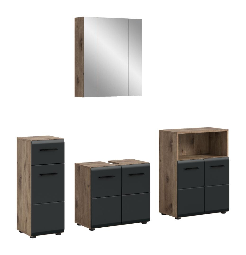 Ebuy24 Ice Badmöbelset I26 Schwarz matt, Eiche Dekor.