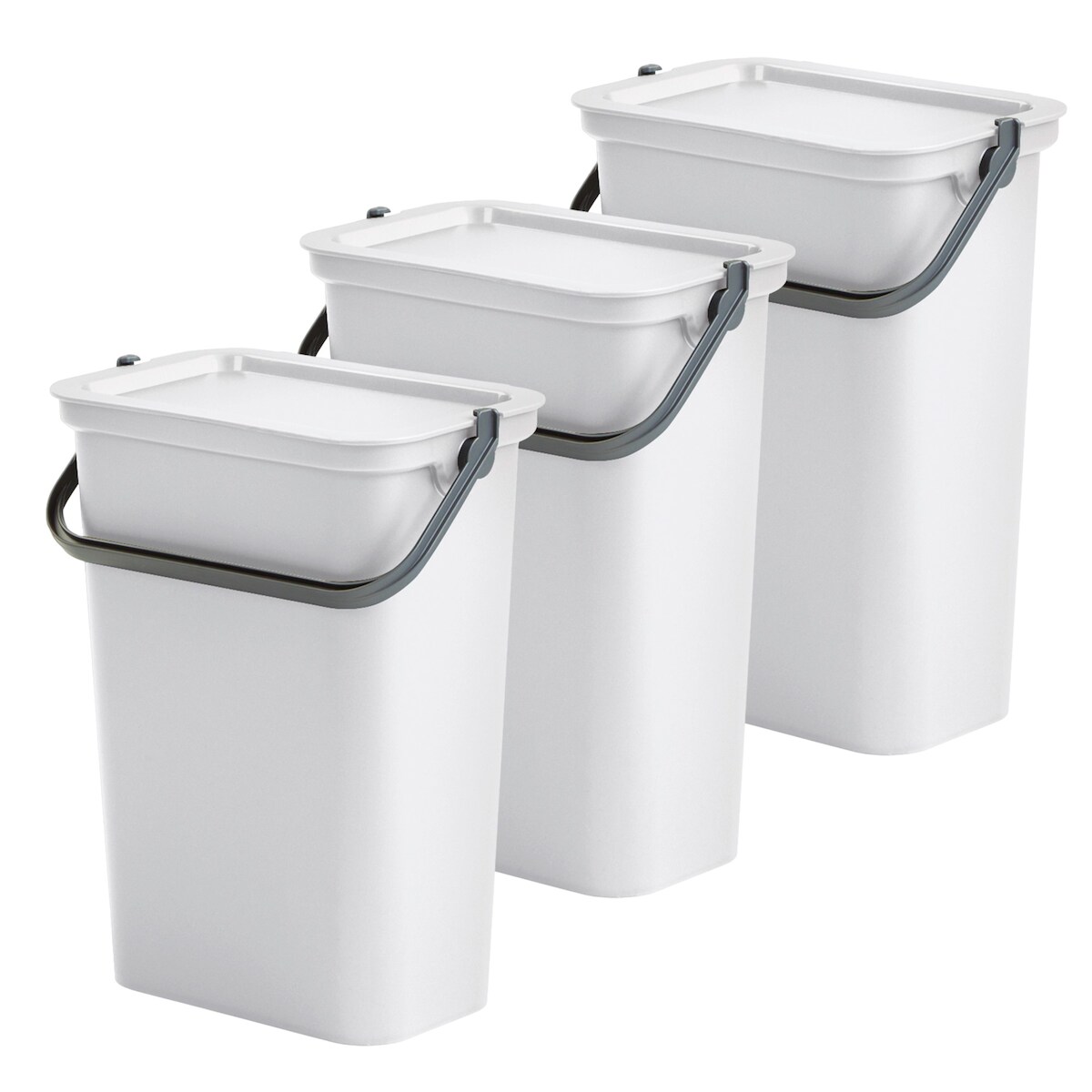 Tontarelli – Set mit 3 weißen Mülleimern mit Griff, 10 l, Fashion Collection