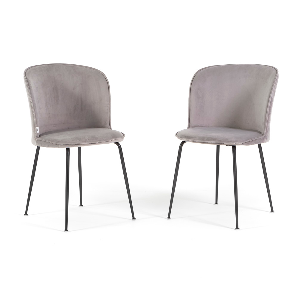 RATTATAN Set aus 2 LEILA Samtstühlen für den Innenbereich mit Metallbeinen – elegant und modern für Küche, Esszimmer, Büro, Bar und Restaurant – Grau/Grau