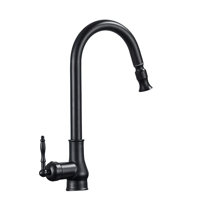 KLARWERK JANA | Vintage Edelstahl ausziehbare Küchenarmatur Schwarz antik | Mischbatterie hoher Bogen | Wasserhahn Gastro Hochdruck 360° drehbar 2 Anschlüsse