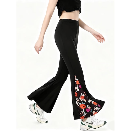 nuovi pantaloni micro svasati con elastico in vita, temperamento patchwork, pantaloni neri, pantaloni comodi micro elastici a vita alta