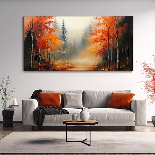dipinto a olio fatto a mano su tela decorazione da parete moderna astratta arancione foresta di aceri paesaggio per soggiorno arredamento casa cornice tesa dipinto appeso / senza cornice