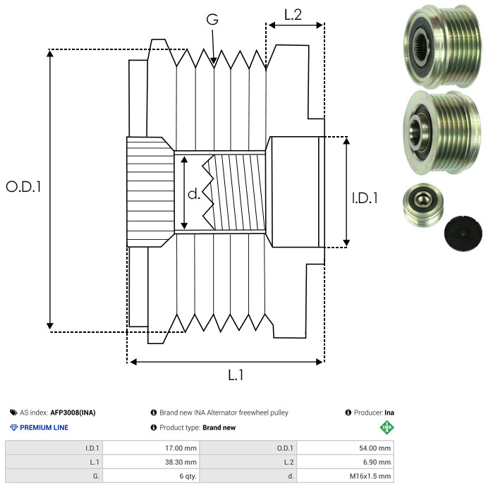 AS-PL Generatorfreilauf AFP3008(INA) für SUZUKI FIAT FORD BMW OPEL 1581704 31771-85E00-000 12317792020