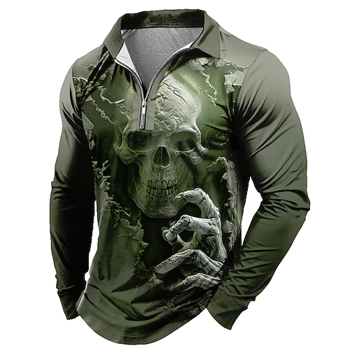 Giorno dei Morti Per uomo Teschio Polo Manica Lunga Magliette polo Bavero Casual Scuro Abbigliamento quotidiano Abito da festa Stampa 3D Polo con cerniera a un quarto Primavera Autunno Inverno Blu