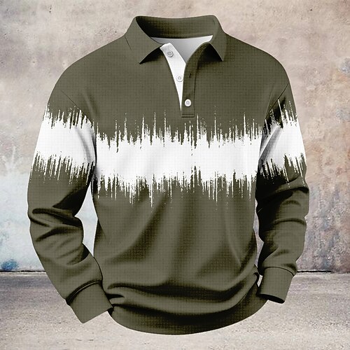 Per uomo A righe Stampe Grafiche Geometria Magliette Polo a Nido d'Ape Polo Polo con revers Polo con zip Maglia da golf Manica Lunga Camicia Collo ripiegato All'aperto Streetwear Blu Verde Cachi