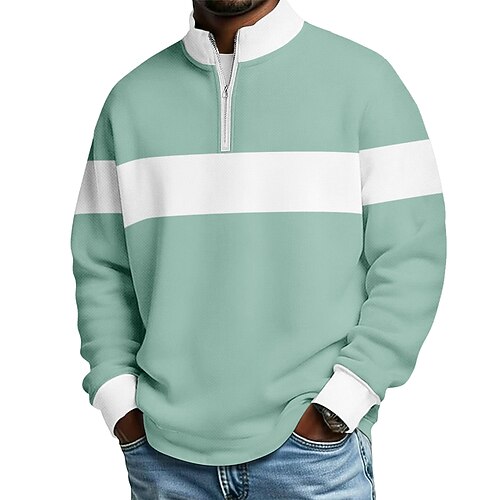 Per uomo Blocco di colori Polo con zip Manica Lunga Magliette polo Colletto alla coreana Casual Scuola Athleisure Ferie Abbigliamento quotidiano Stampa 3D Polo con cerniera a un quarto Primavera