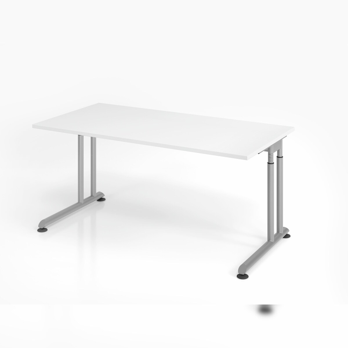 PROREGAL Schreibtisch Nilo | Weiß | Silber Gestell | BxT 160x80cm | Arbeitshöhe 68-82cm | höhenjustierbar, 1cm Raster | C-Fuß-Gestell | Bürotisch