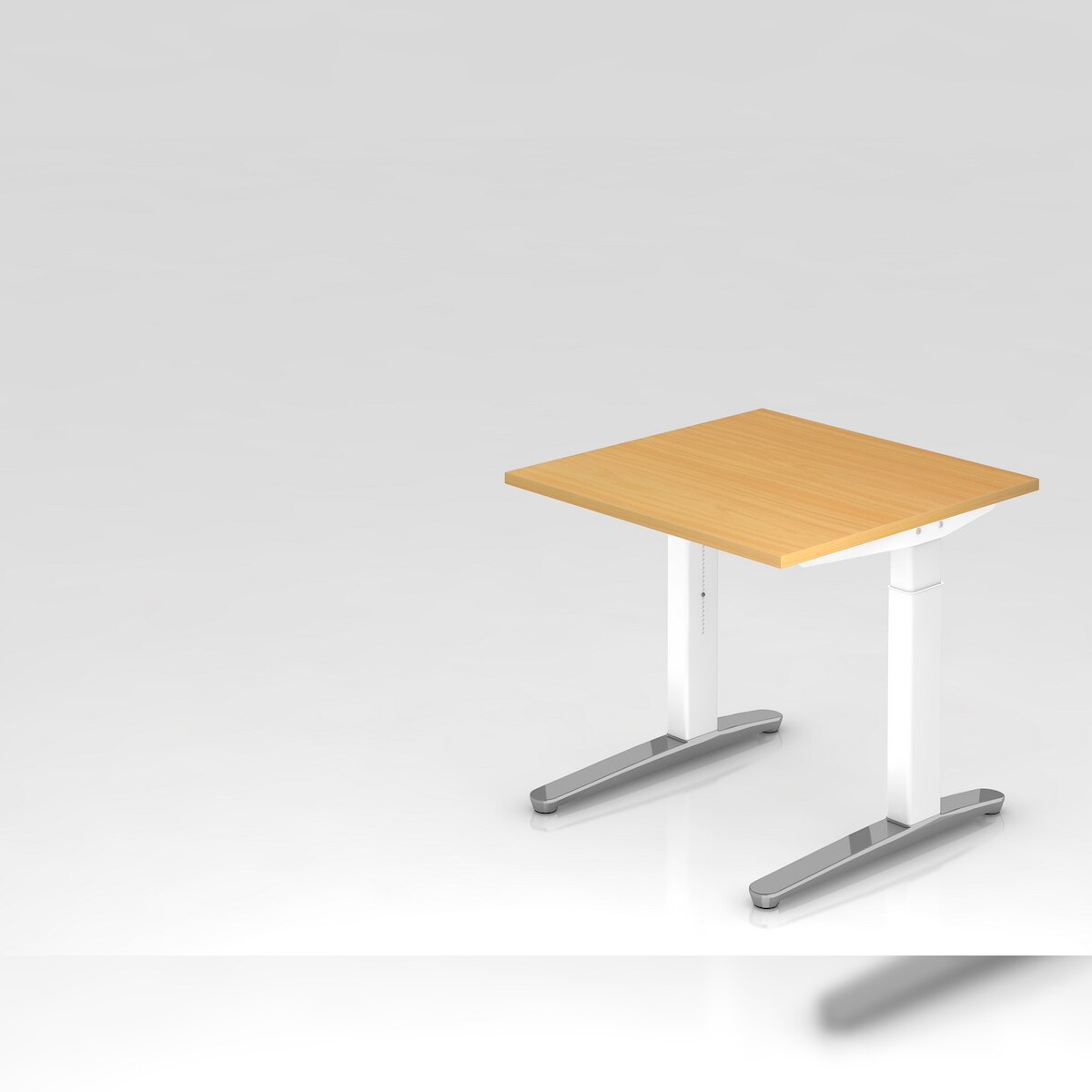 PROREGAL Schreibtisch Mika | Buche | Weißes Gestell poliert | BxT 80x80cm | Arbeitshöhe 65-85cm | höhenjustierbar, 1cm Raster | C-Fuß-Gestell