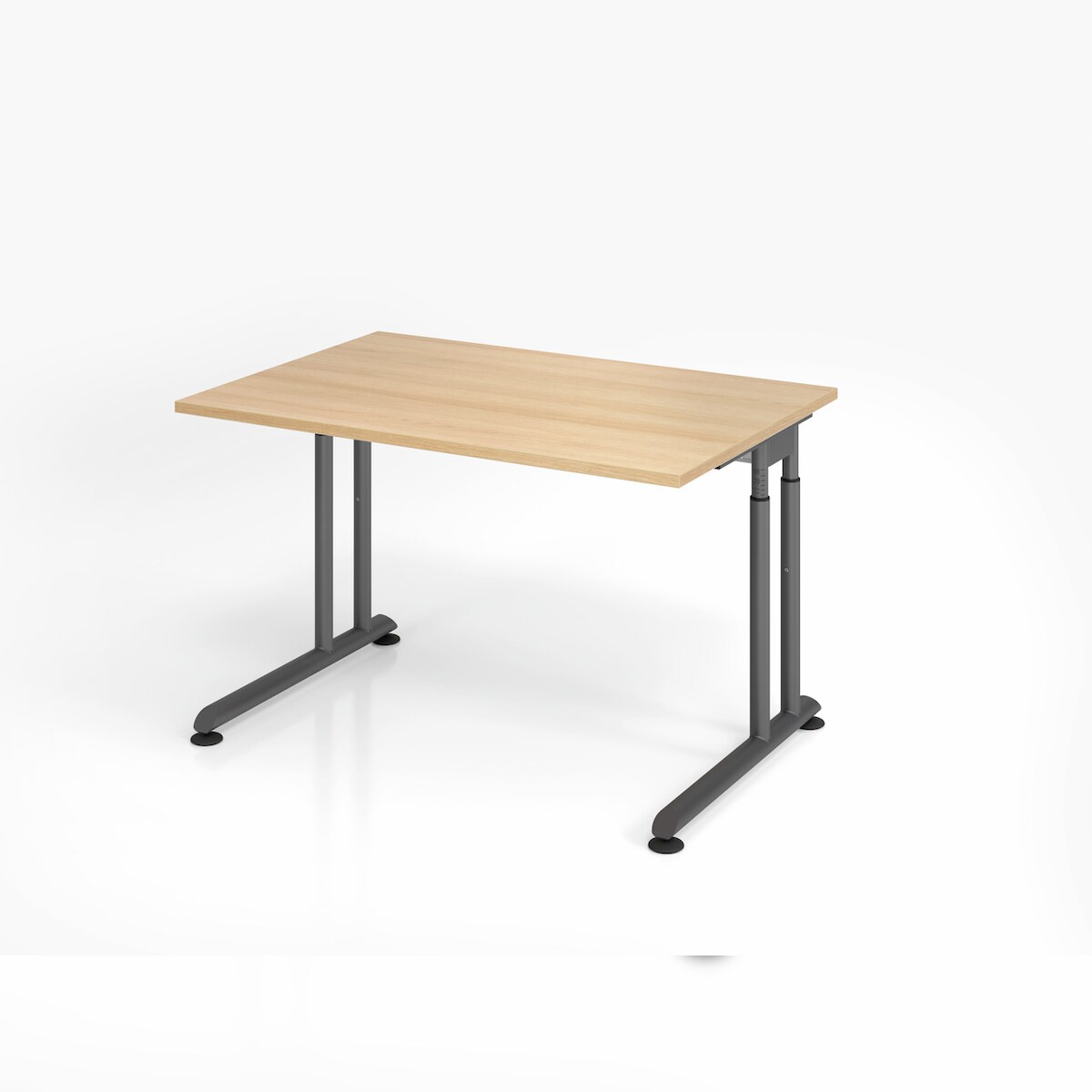 PROREGAL Schreibtisch Nilo | Eiche | Graues Gestell | BxT 120x80cm | Arbeitshöhe 68-82cm | höhenjustierbar, 1cm Raster | C-Fuß-Gestell | Bürotisch