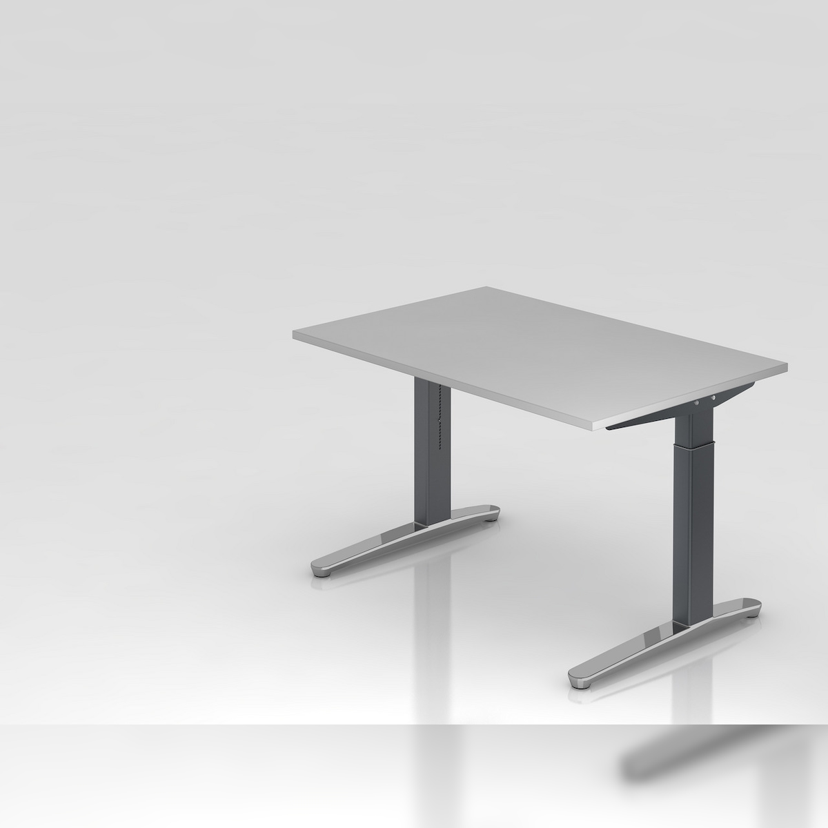 PROREGAL Schreibtisch Mika | Grau | Weißes Gestell poliert | BxT 200x100cm | Arbeitshöhe 65-85cm | höhenjustierbar, 1cm Raster | C-Fuß-Gestell