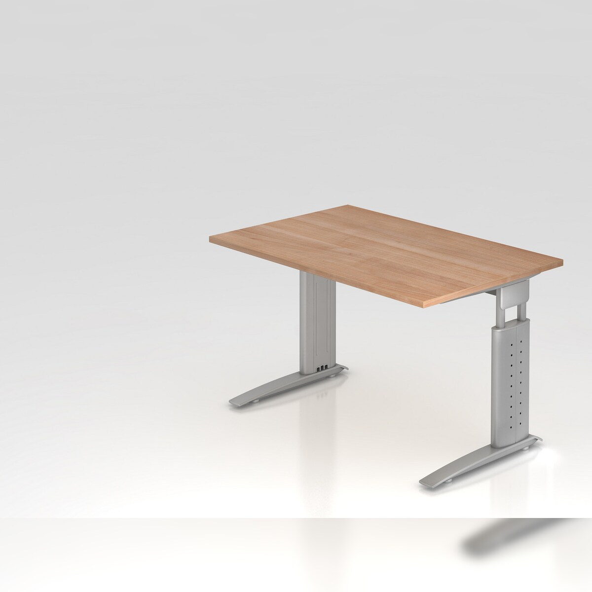 PROREGAL Schreibtisch Mauri | Nussbaum | Silber Gestell | BxT 120x80cm | Arbeitshöhe 68-86cm | höhenjustierbar, 2cm Raster | C-Fuß-Gestell
