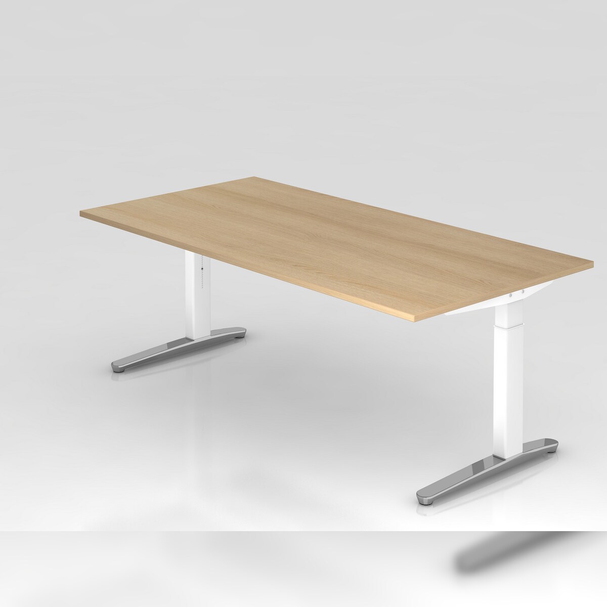 PROREGAL Schreibtisch Mika | Eiche | Weißes Gestell poliert | BxT 200x100cm | Arbeitshöhe 65-85cm | höhenjustierbar, 1cm Raster | C-Fuß-Gestell