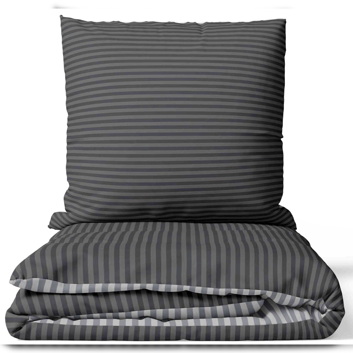 Leonado Vicenti Baumwolle Bettwäsche 155x220 cm Anthrazit Grau gestreift Wendeseite Reißverschluss 2 tlg