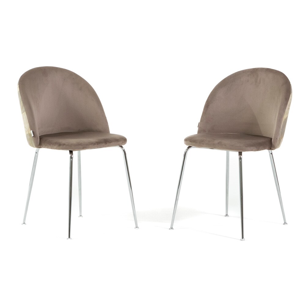 RATTATAN Set aus 2 Innenstühlen aus dekorativem Samt mit Metallbeinen, elegantes Design für Küche, Esszimmer, Bar und Restaurant – Sara – Taupe/Silber