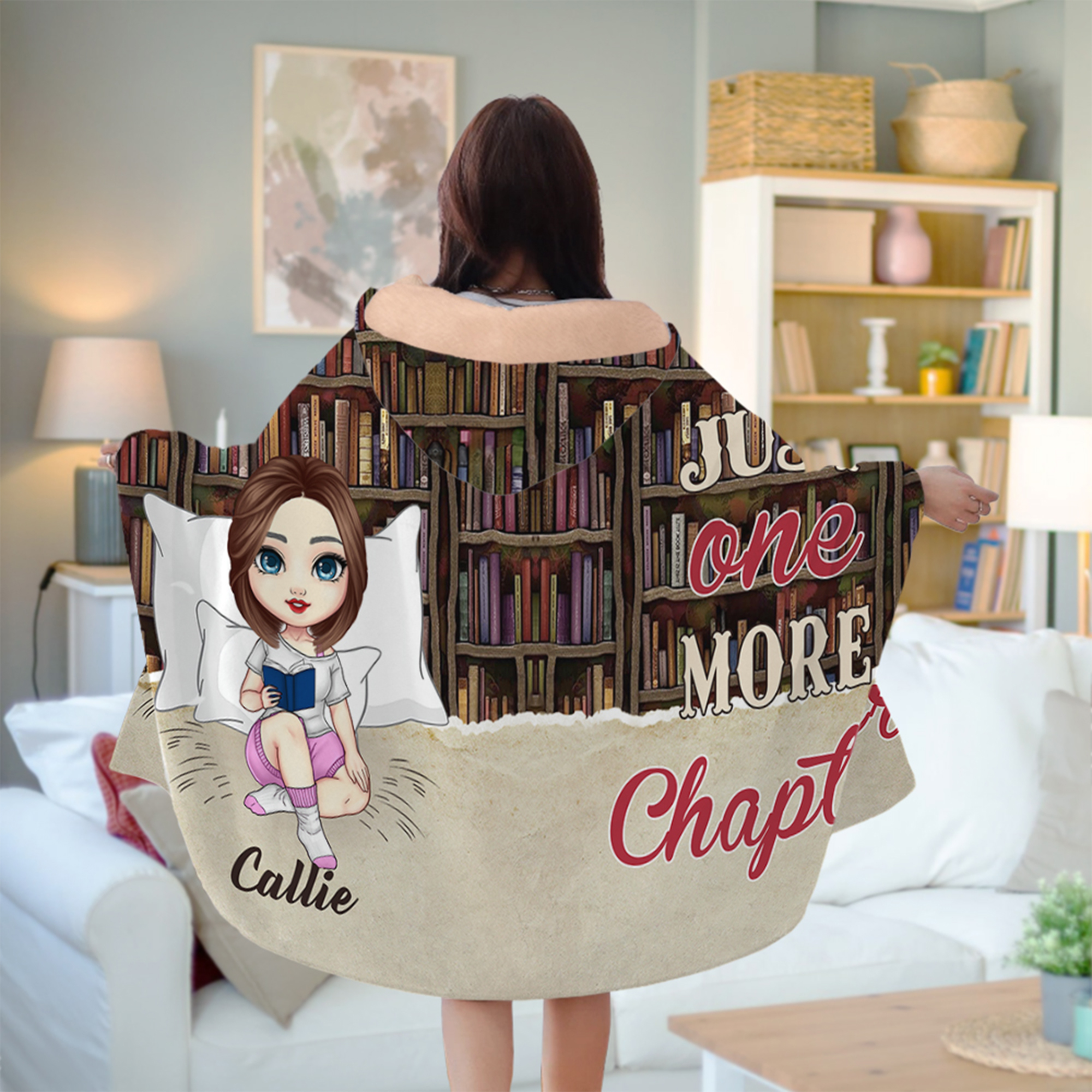 Estantería personalizada Personaje de dibujos animados Manta suave con capucha y nombre Decoración del hogar Regalo de cumpleaños para los amantes de los libros