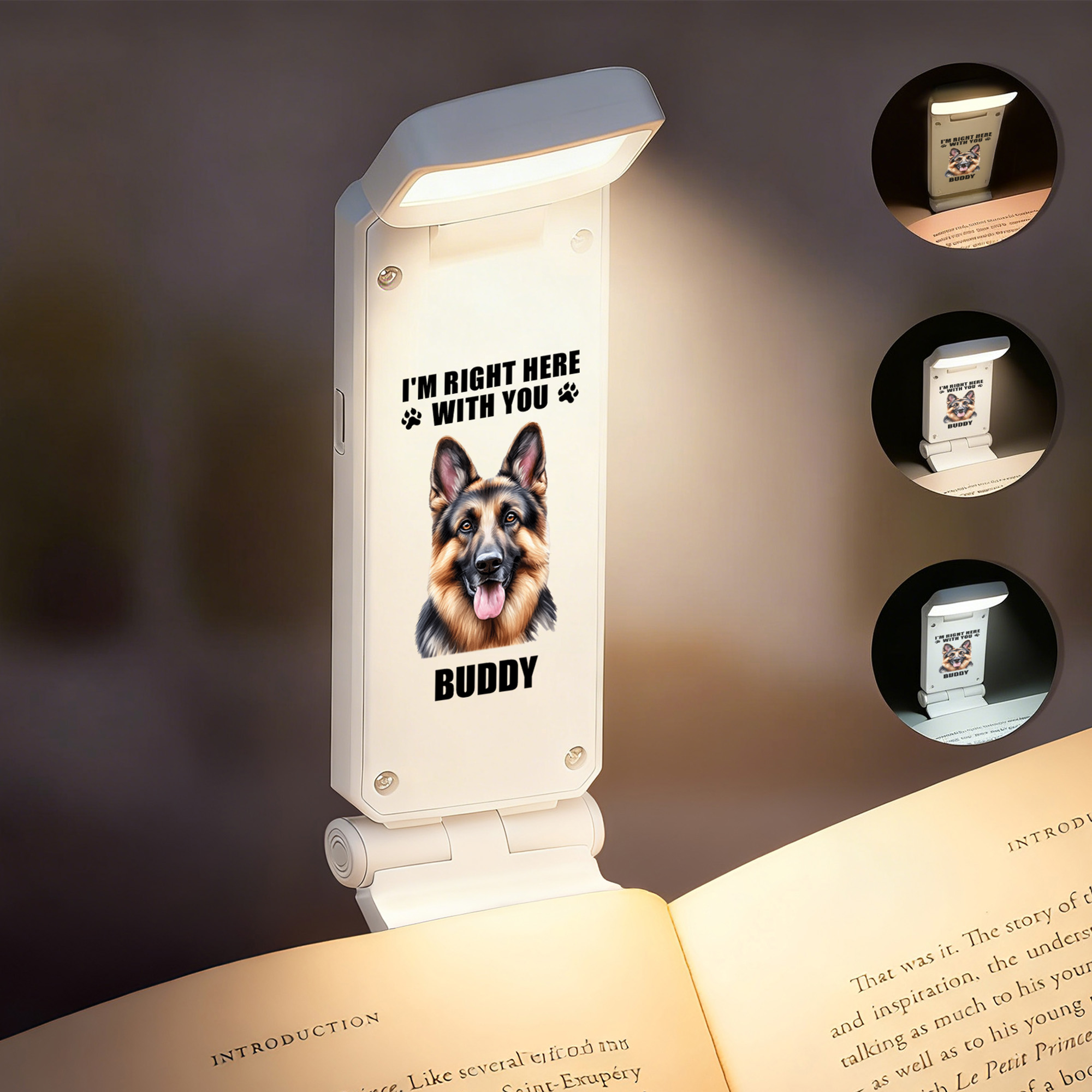 Clip luminoso recargable con LED y nombre personalizado con foto de mascota de dibujos animados Accesorio de lectura Regalo de cumpleaños para dueños de mascotas Amantes de los libros Ratones de bibli