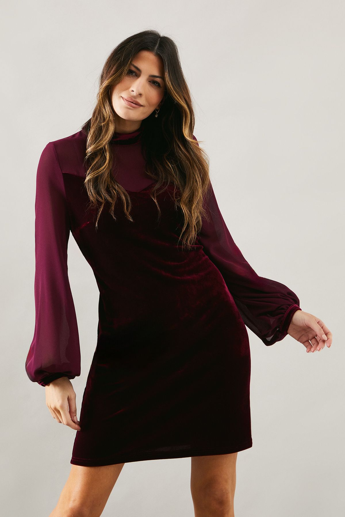Wallis Womens Occasion Velvet Chiffon Sleeve Shift Dress - Wine - Size 8 UK | Wallis Sale | Discount Designer Brands