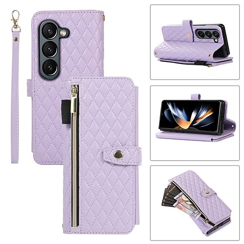 telefono Custodia Per Samsung Galaxy Z Fold 5 Z Fold 4 Z Fold 3 Custodia Portafoglio Cerniera con Cordino Con Cinturino da Polso Retrò