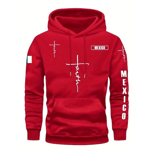 Per uomo Felpa con cappuccio Nero Rosa Rosso Blu Verde Con Cappuccio Bandiera Croce Tasca Coulisse Tasca Frontale Sport Outdoor Quotidiano Ferie Poliestere Streetwear Grafica Casual Autunno Inverno